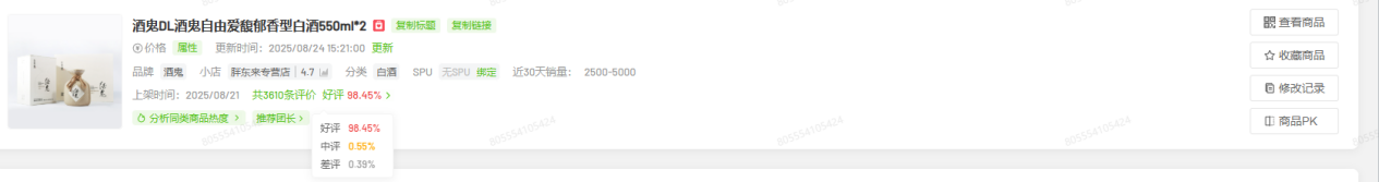 热销的背后,是过硬的品质支撑。在抖音胖东来专营店,该产品两款链接(550ml*6、550m*l2)的好评率均稳定在98%以上。胖东来创始人于东来更是直言:“酒鬼自由爱的酒质,相当于市场上600元左右酒的品质。”
