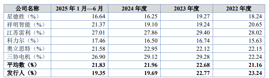 报告期内,公司主营业务毛利率分别为23.24%、22.77%、19.69%和19.35%,同行业可比公司平均毛利率分别为21.16%、22.68%、21.96%和21.83%;公司主营业务毛利率与同行业可比公司平均毛利率不存在显著差异。