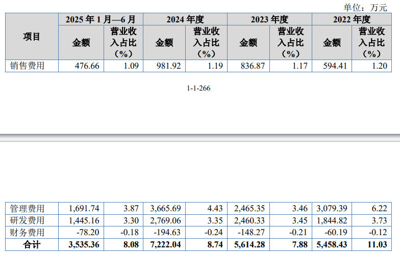 报告期内,公司期间费用分别为5,458.43万元、5,614.28万元、7,222.04万元和3,535.36万元,占营业收入的比例分别为11.03%、7.88%、8.74%和8.08%。