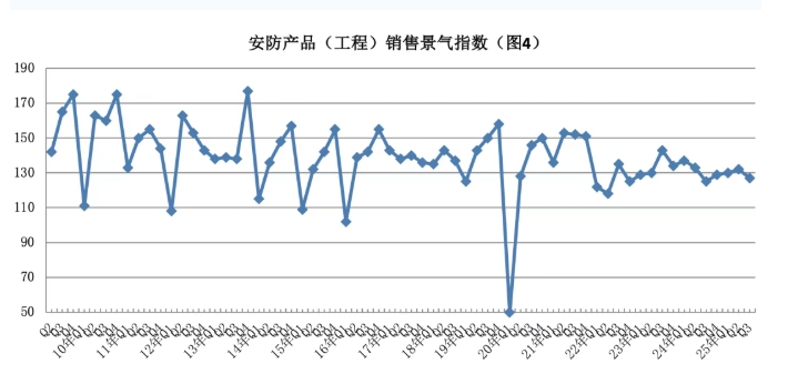 值得关注的是,国内安防行业在弱周期中已显现明确韧性与复苏迹象。中国安防协会数据显示,2025年三季度我国安防行业景气指数为145,虽较上季度微降3点,但较去年同期上升2点,持续处于“较景气区间”;59%的调查企业认为经营状况“良好”,同比、环比均呈上升态势。