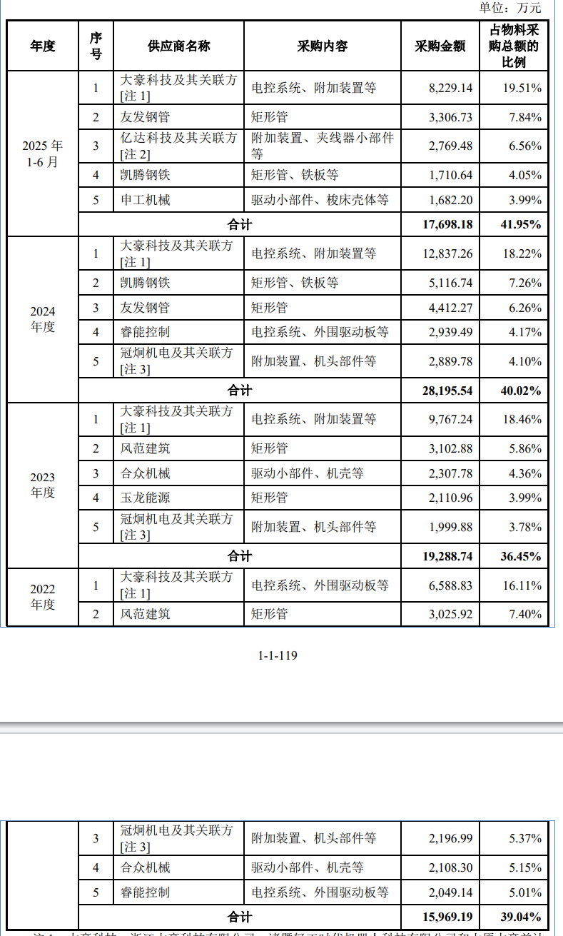 报告期内,公司前五大供应商采购金额合计分别为15,969.19万元、19,288.74万元、28,195.54万元、17,698.18万元,占物料采购总额的比重分别为39.04%、36.45%、40.02%、41.95%,不存在向单个供应商的采购比例超过当期总额50%或严重依赖少数供应商的情况。