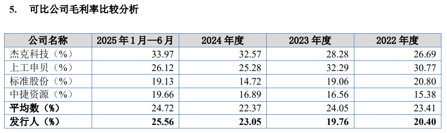报告期各期,公司主营业务毛利率分别为20.40%、19.76%、23.05%和25.56%,2022年与2023年毛利率基本保持稳定,2024年、2025年1-6月受销售规模扩大、大宗材料价格下跌及适当提价等因素的综合影响使得毛利率分别较上期上涨了3.29个百分点、2.51个百分点。