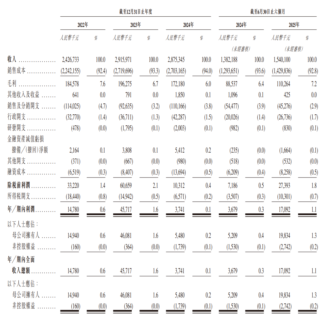 报告期内(2022年至2025年上半年),融泰药业的收入分别为24.27亿元、29.16亿元、28.75亿元、15.4亿元。