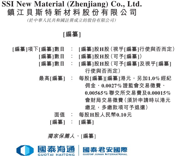 1月13日消息,1月12日,镇江贝斯特新材料股份有限公司(简称:贝斯特,300580.SZ)向港交所主板递交上市申请,国泰海通为其独家保荐人。