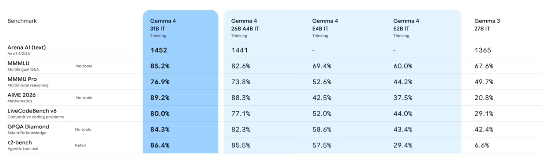 谷歌发布 Gemma 4 开源大模型,31B 参数性能达头部水准