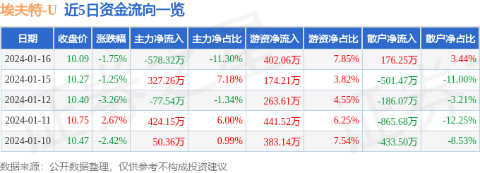 1月16日的资金流向数据方面,主力资金净流出578.32万元,占总成交额11.3%,游资资金净流入402.06万元,占总成交额7.85%,散户资金净流入176.25万元,占总成交额3.44%。
