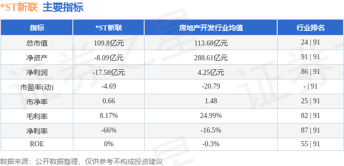 *ST新联2023年三季报显示,公司主营收入26.73亿元,同比下降14.27%;归母净利润-17.58亿元,同比下降18.76%;扣非净利润-19.31亿元,同比下降30.51%;其中2023年第三季度,公司单季度主营收入9.49亿元,同比下降4.8%;单季度归母净利润-5.36亿元,同比下降10.02%;单季度扣非净利润-5.3亿元,同比下降24.72%;负债率102.14%,投资收益6705.84万元,财务费用14.8亿元,毛利率8.17%。*ST新联(000620)主营业务:文化旅游,规划设计,房地产开发,商业,酒店业,建筑业,物业服务,园林景观,旅游服务。