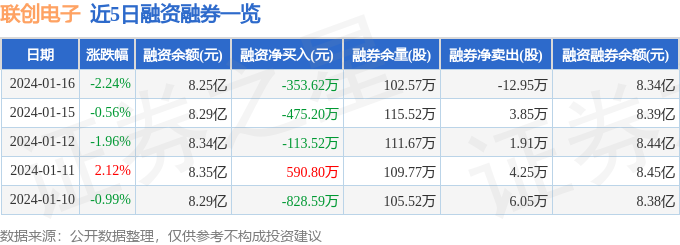 联创电子融资融券信息显示,融资方面,当日融资买入1854.9万元,融资偿还2208.51万元,融资净偿还353.62万元。融券方面,融券卖出21.07万股,融券偿还34.02万股,融券余量102.57万股,融券余额896.49万元。融资融券余额8.34亿元。近5日融资融券数据一览见下表: