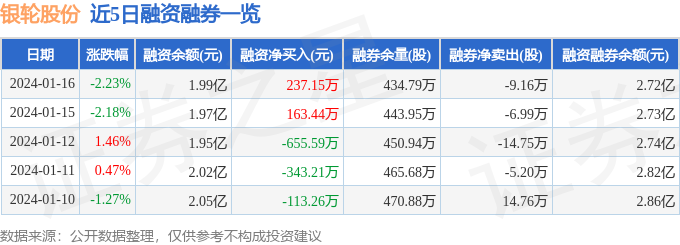 银轮股份融资融券信息显示,融资方面,当日融资买入1181.58万元,融资偿还944.43万元,融资净买入237.15万元。融券方面,融券卖出15.68万股,融券偿还24.84万股,融券余量434.79万股,融券余额7247.9万元。融资融券余额2.72亿元。近5日融资融券数据一览见下表: