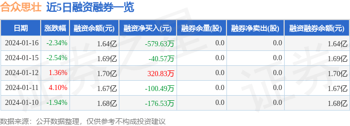 合众思壮融资融券信息显示,融资方面,当日融资买入411.83万元,融资偿还991.46万元,融资净偿还579.63万元。融券方面,融券卖出0.0股,融券偿还0.0股,融券余量0.0股,融券余额0.0万元。融资融券余额1.64亿元。近5日融资融券数据一览见下表: