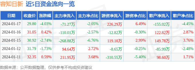 股票行情快报:容知日新(688768)1月17日主力资金净卖出71.27万元