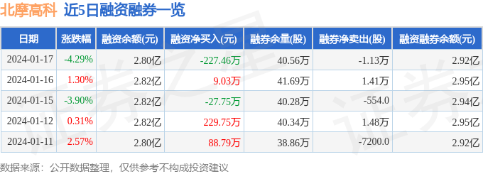 北摩高科融资融券信息显示,融资方面,当日融资买入395.25万元,融资偿还622.71万元,融资净偿还227.46万元。融券方面,融券卖出1.38万股,融券偿还2.51万股,融券余量40.56万股,融券余额1211.26万元。融资融券余额2.92亿元。近5日融资融券数据一览见下表: