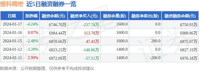 财经消息,截至2024年1月17日收盘,维科精密(301499)报收于26.43元,下跌4.24%,换手率5.18%,成交量1.7万手,成交额4560.85万元。