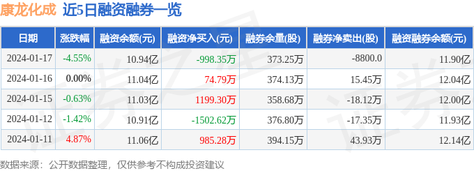 康龙化成融资融券信息显示,融资方面,当日融资买入3448.5万元,融资偿还4446.85万元,融资净偿还998.35万元。融券方面,融券卖出18.66万股,融券偿还19.54万股,融券余量373.25万股,融券余额9551.59万元。融资融券余额11.9亿元。近5日融资融券数据一览见下表:
