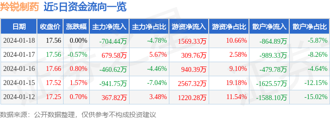 财经消息,截至2024年1月18日收盘,羚锐制药(600285)报收于17.56元,上涨0.0%,换手率1.52%,成交量8.55万手,成交额1.47亿元。