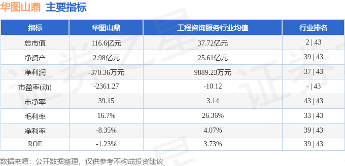 华图山鼎2023年三季报显示,公司主营收入4437.28万元,同比下降34.08%;归母净利润-370.36万元,同比下降162.76%;扣非净利润-662.73万元,同比下降312.73%;其中2023年第三季度,公司单季度主营收入1233.82万元,同比下降48.03%;单季度归母净利润18.81万元,同比下降97.45%;单季度扣非净利润-144.95万元,同比下降121.57%;负债率9.26%,投资收益193.52万元,财务费用-11.36万元,毛利率16.7%。华图山鼎(300492)主营业务:建筑工程设计及相关咨询服务,提供包括潜在开发项目的前期咨询,工程建设项目的概念设计、方案设计、初步设计、施工图设计及施工配合等服务,以及基于以上服务衍生的相关绿建设计、装配式建筑设计、幕墙设计等精细化服务。