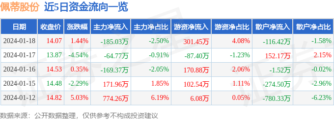股票行情快报:佩蒂股份(300673)1月18日主力资金净卖出185.03万元