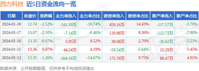 西力科技(688616)1月18日主力资金净卖出341.59万元