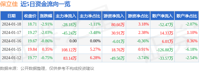 保立佳(301037)1月18日主力资金净卖出28.18万元