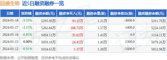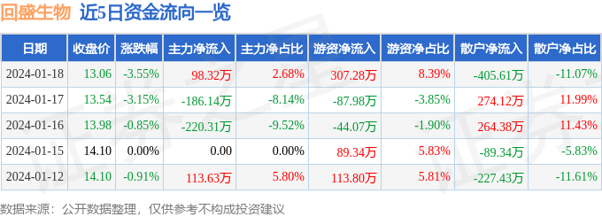 回盛生物(300871)1月18日主力资金净买入98.32万元