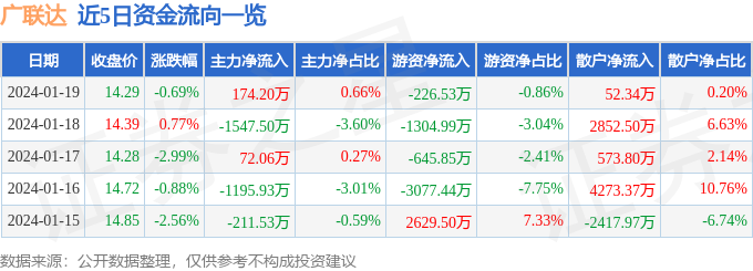 1月19日的资金流向数据方面,主力资金净流入174.2万元,占总成交额0.66%,游资资金净流出226.53万元,占总成交额0.86%,散户资金净流入52.34万元,占总成交额0.2%。