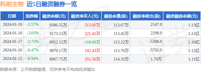 科前生物融资融券信息显示,融资方面,当日融资买入275.78万元,融资偿还62.76万元,融资净买入213.01万元。融券方面,融券卖出1.19万股,融券偿还9749.0股,融券余量113.67万股,融券余额1932.34万元。融资融券余额1.13亿元。近5日融资融券数据一览见下表: