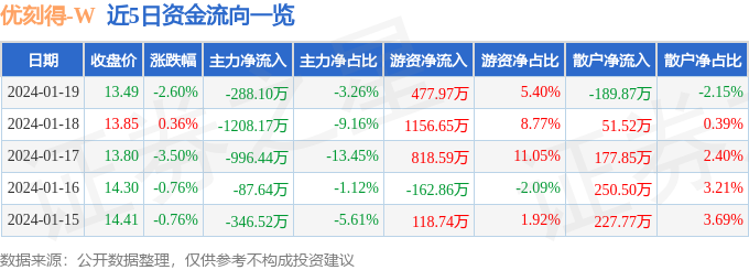1月19日的资金流向数据方面,主力资金净流出288.1万元,占总成交额3.26%,游资资金净流入477.97万元,占总成交额5.4%,散户资金净流出189.87万元,占总成交额2.15%。