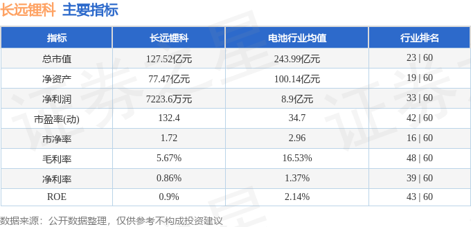 长远锂科2023年三季报显示,公司主营收入83.65亿元,同比下降34.11%;归母净利润7223.6万元,同比下降93.51%;扣非净利润2417.57万元,同比下降97.75%;其中2023年第三季度,公司单季度主营收入34.76亿元,同比下降31.34%;单季度归母净利润772.38万元,同比下降97.83%;单季度扣非净利润-613.71万元,同比下降101.75%;负债率49.62%,投资收益-778.86万元,财务费用2354.58万元,毛利率5.67%。长远锂科(688779)主营业务:从事高效电池正极材料研发、生产和销售。