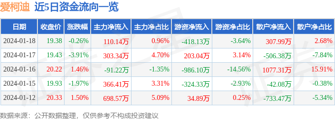 股票行情快报:爱柯迪(600933)1月18日主力资金净买入110.14万元
