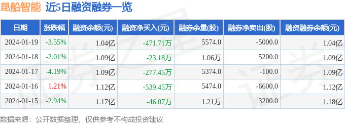 昆船智能融资融券信息显示,融资方面,当日融资买入672.23万元,融资偿还1143.95万元,融资净偿还471.71万元。融券方面,融券卖出400.0股,融券偿还5400.0股,融券余量5574.0股,融券余额11.8万元。融资融券余额1.04亿元。近5日融资融券数据一览见下表: