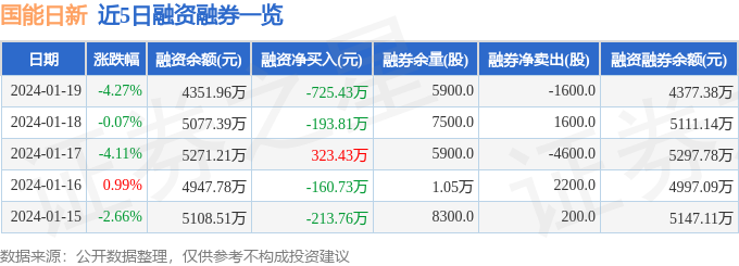国能日新融资融券信息显示,融资方面,当日融资买入278.38万元,融资偿还1003.82万元,融资净偿还725.43万元。融券方面,融券卖出3900.0股,融券偿还5500.0股,融券余量5900.0股,融券余额25.42万元。融资融券余额4377.38万元。近5日融资融券数据一览见下表: