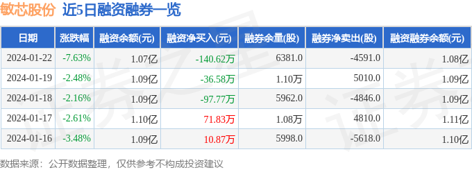 敏芯股份融资融券信息显示,融资方面,当日融资买入234.84万元,融资偿还375.46万元,融资净偿还140.62万元。融券方面,融券卖出1425.0股,融券偿还6016.0股,融券余量6381.0股,融券余额31.27万元。融资融券余额1.08亿元。近5日融资融券数据一览见下表: