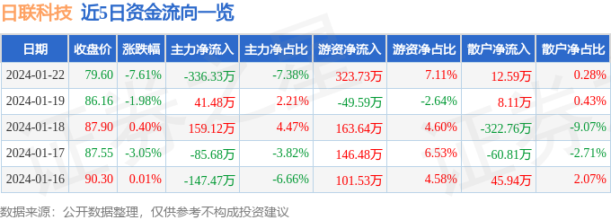 日联科技(688531)1月22日主力资金净卖出336.33万元