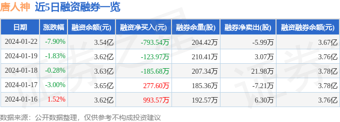 财经消息,截至2024年1月22日收盘,唐人神(002567)报收于6.41元,下跌7.9%,换手率2.62%,成交量35.75万手,成交额2.37亿元。
