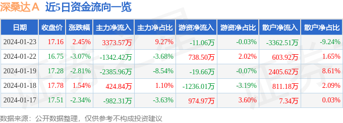 股票行情快报:深桑达A(000032)1月23日主力资金净买入3373.57万元