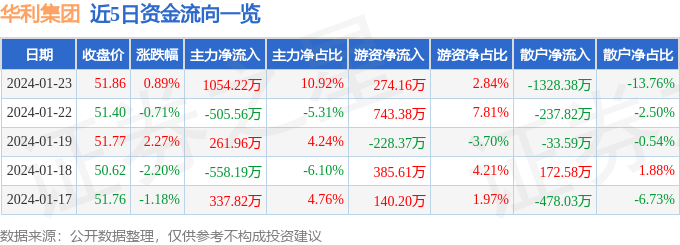 股票行情快报:华利集团(300979)1月23日主力资金净买入1054.22万元