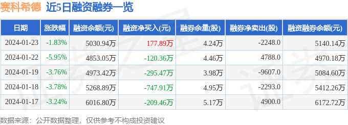 赛科希德融资融券信息显示,融资方面,当日融资买入236.35万元,融资偿还58.46万元,融资净买入177.89万元。融券方面,融券卖出3040.0股,融券偿还5288.0股,融券余量4.24万股,融券余额109.2万元。融资融券余额5140.14万元。近5日融资融券数据一览见下表: