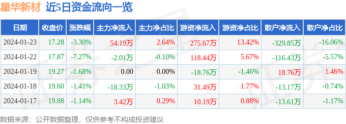 星华新材(301077)1月23日主力资金净买入54.19万元