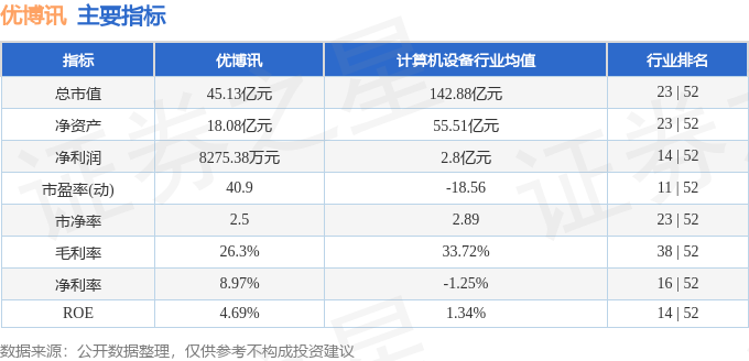 优博讯2023年三季报显示,公司主营收入9.21亿元,同比下降10.16%;归母净利润8275.38万元,同比下降38.04%;扣非净利润7221.23万元,同比下降25.19%;其中2023年第三季度,公司单季度主营收入3.12亿元,同比下降15.34%;单季度归母净利润3335.6万元,同比下降47.09%;单季度扣非净利润2844.09万元,同比下降33.1%;负债率28.5%,投资收益146.76万元,财务费用-2432.84万元,毛利率26.3%。优博讯(300531)主营业务:研发、生产、销售智能数据终端(PDA)、智能支付终端(智能POS)、专用打印机、智能自动化装备等IoT智能终端产品并提供相关的软件及云服务平台。