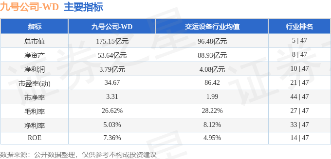 九号公司2023年三季报显示,公司主营收入75.26亿元,同比下降1.39%;归母净利润3.79亿元,同比下降3.75%;扣非净利润3.48亿元,同比下降12.45%;其中2023年第三季度,公司单季度主营收入31.46亿元,同比上升11.89%;单季度归母净利润1.56亿元,同比上升13.31%;单季度扣非净利润1.36亿元,同比下降15.36%;负债率50.39%,投资收益-1936.3万元,财务费用-1.2亿元,毛利率26.62%。九号公司(689009)主营业务:各类智能短程移动设备的设计、研发、生产、销售及服务。经过多年的发展,依托自身在技术创新、工业设计、供应链管理、品牌推广等多方面积累的竞争优势,已经形成包括电动平衡车、电动滑板车、电动两轮车、全地形车、服务机器人等品类丰富的产品。
