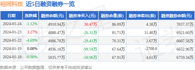 财经消息,截至2024年1月24日收盘,裕同科技(002831)报收于24.7元,下跌1.12%,换手率0.53%,成交量2.78万手,成交额6830.33万元。