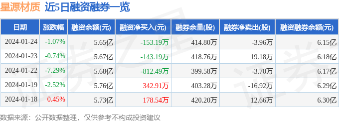 星源材质融资融券信息显示,融资方面,当日融资买入1531.3万元,融资偿还1684.48万元,融资净偿还153.19万元。融券方面,融券卖出28.4万股,融券偿还32.36万股,融券余量414.8万股,融券余额4973.43万元。融资融券余额6.15亿元。近5日融资融券数据一览见下表: