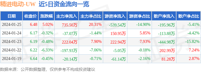 股票行情快报:精进电动(688280)1月24日主力资金净卖出37.07万元