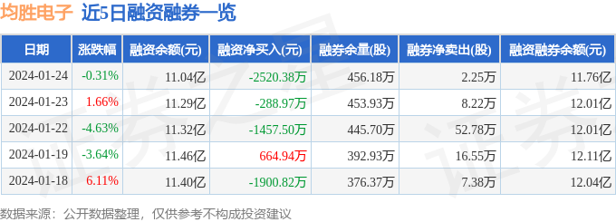 均胜电子融资融券信息显示,融资方面,当日融资买入2456.89万元,融资偿还4977.26万元,融资净偿还2520.38万元。融券方面,融券卖出30.62万股,融券偿还28.37万股,融券余量456.18万股,融券余额7234.94万元。融资融券余额11.76亿元。近5日融资融券数据一览见下表: