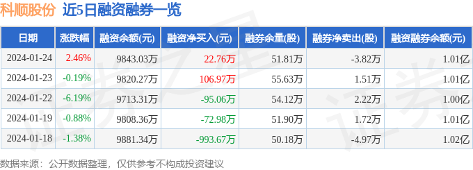 股票行情快报:科顺股份(300737)1月24日主力资金净卖出57.76万元
