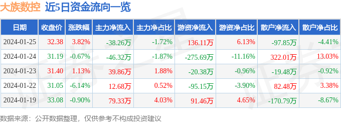 股票行情快报:大族数控(301200)1月25日主力资金净卖出38.26万元