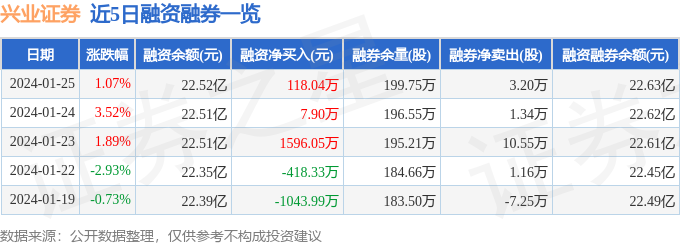 兴业证券(601377)1月25日主力资金净买入539.16万元