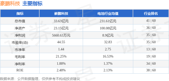 该股主要指标及行业内排名如下:
