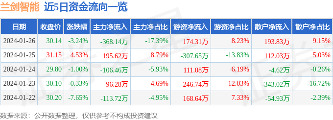 1月26日的资金流向数据方面,主力资金净流出368.14万元,占总成交额17.39%,游资资金净流入174.31万元,占总成交额8.23%,散户资金净流入193.83万元,占总成交额9.15%。