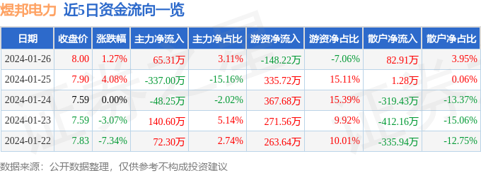 1月26日的资金流向数据方面,主力资金净流入65.31万元,占总成交额3.11%,游资资金净流出148.22万元,占总成交额7.06%,散户资金净流入82.91万元,占总成交额3.95%。